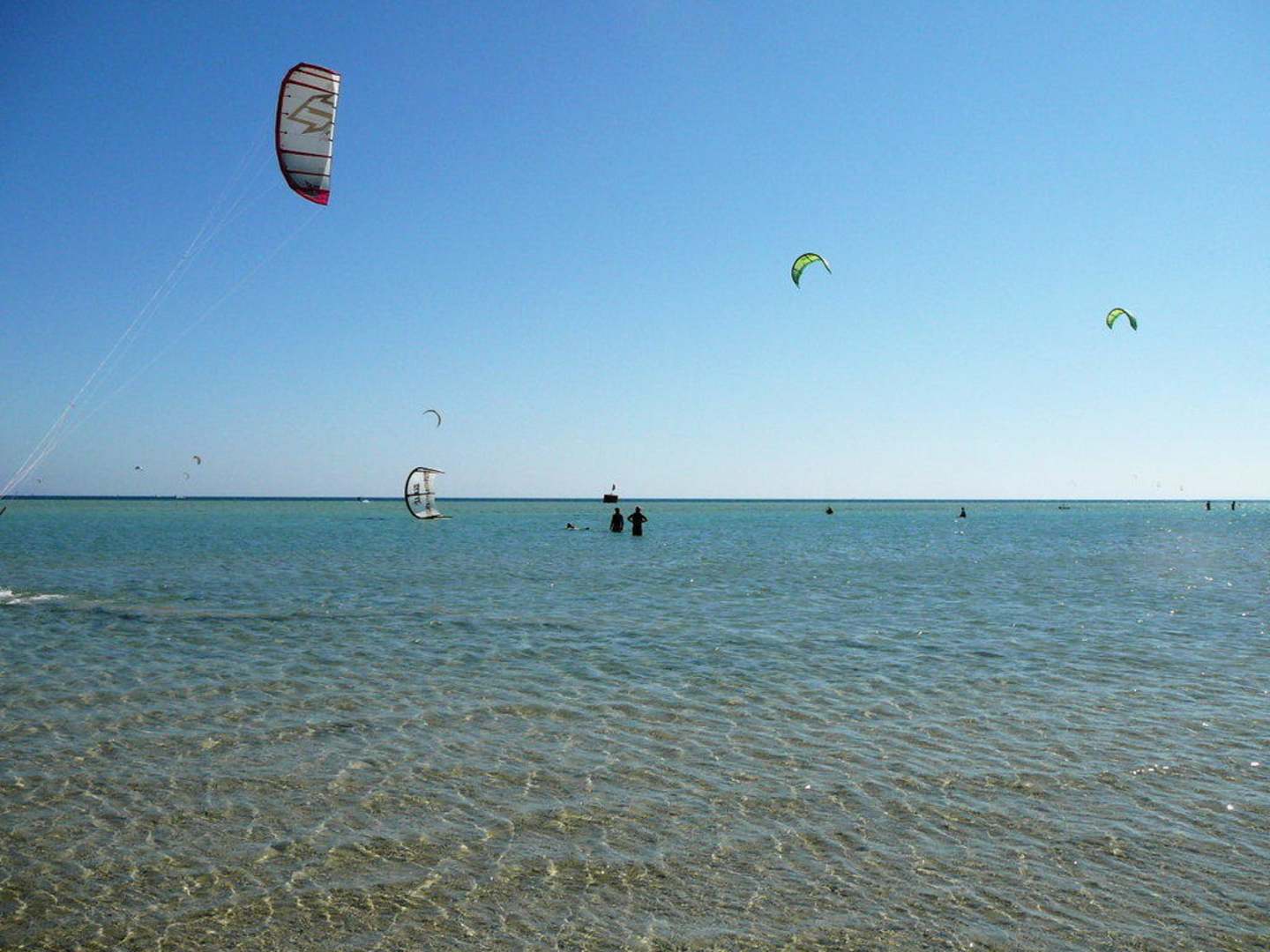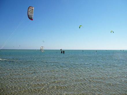 Breiter flacher Strand, türkises Wasser