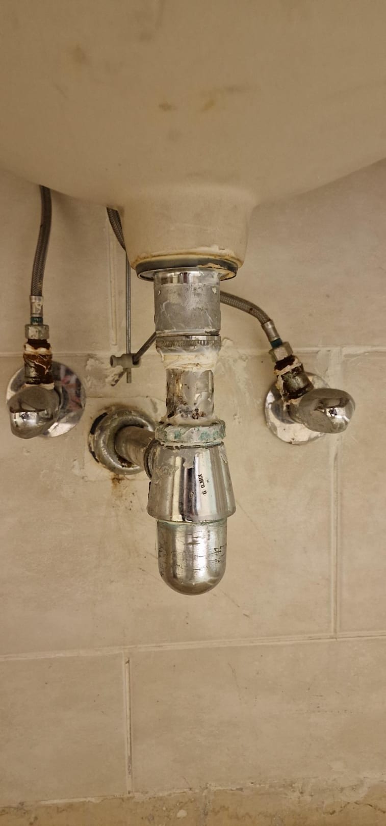 Verrostete, x-mal geflickte Waschbeckenarmatur