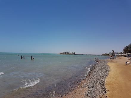 ...steiniger Zugang zum Meer. Danach Sand....