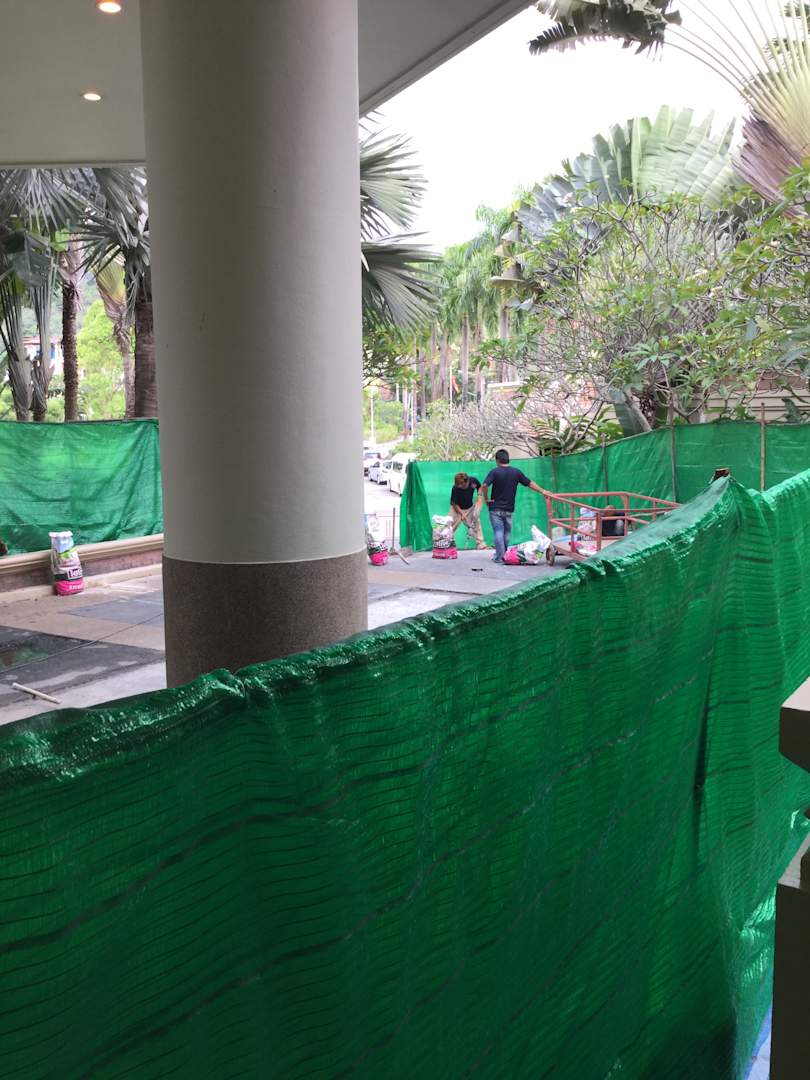 Bauarbeiten am Haupteingang mit Lärm