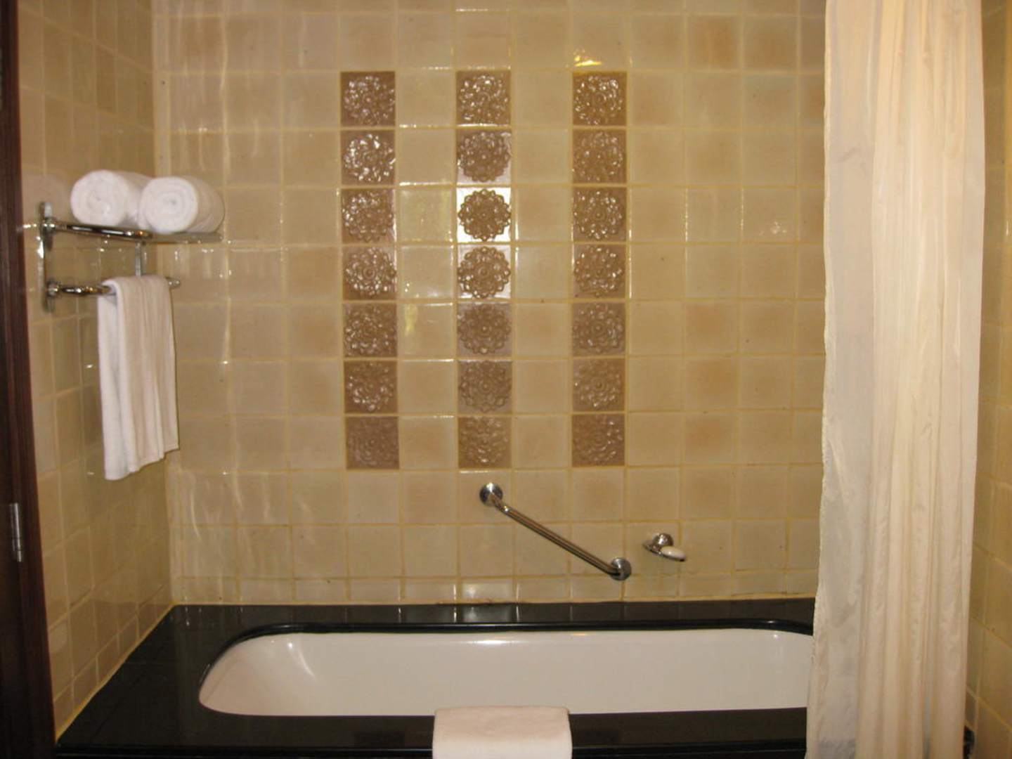 Badewanne mit grausligem Duschvorhang!