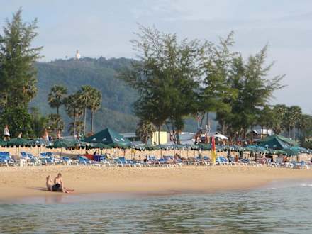 Karon Beach mit Weissem Buddha im Hintergrund