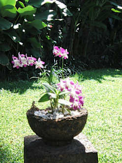 Wunderschöne Blumentöpfe in der Gartenanlage