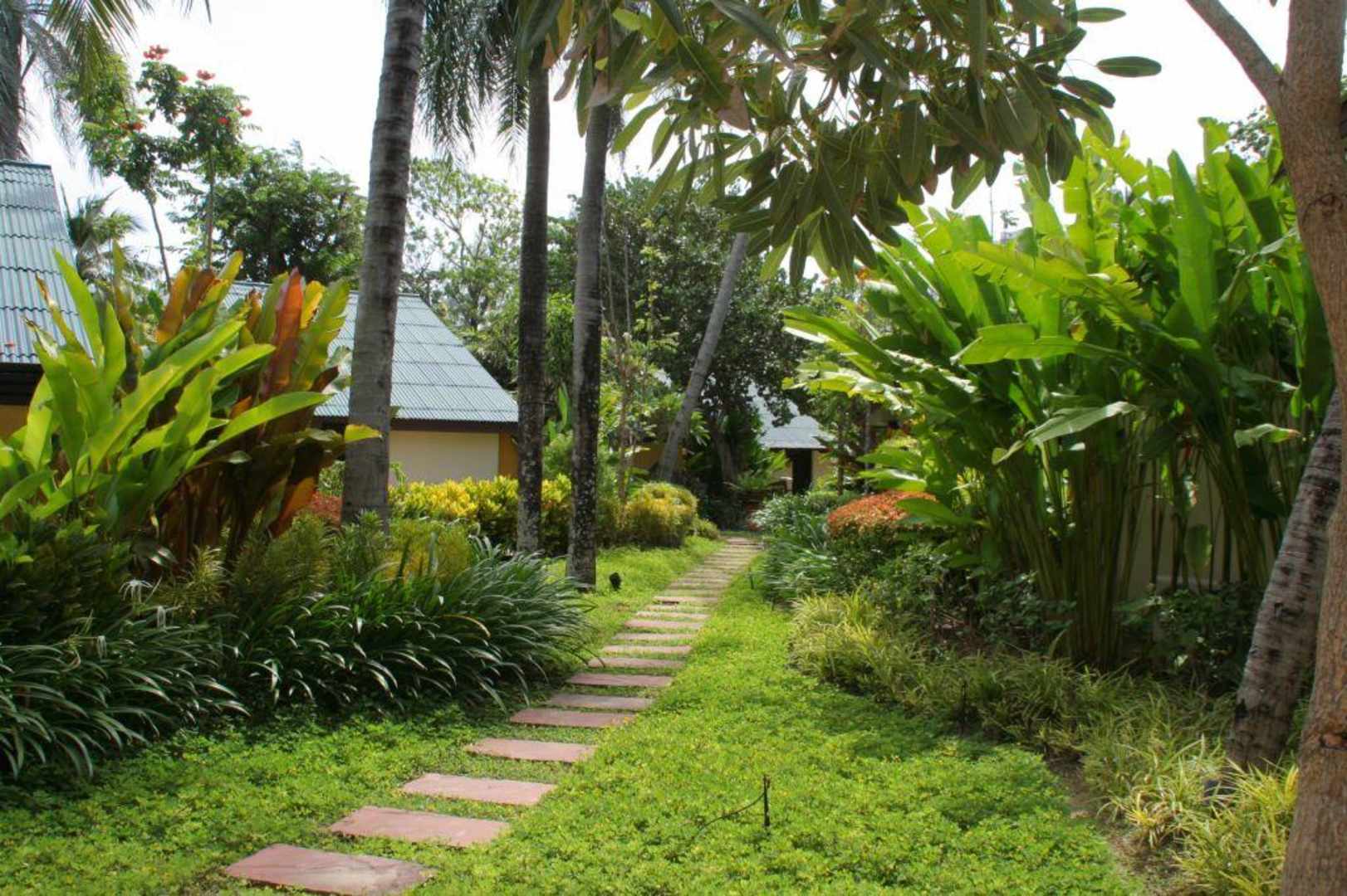Hotelgarten mit den versteckt liegenden Hotelbungalows