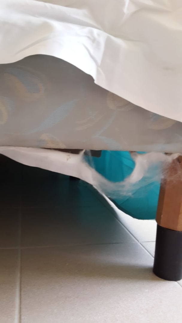 Bett schmutzig und durchgelegen.