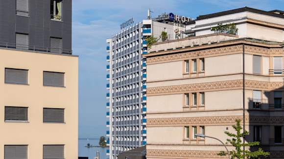 Hotel vom Bahnhof aus fotografiert