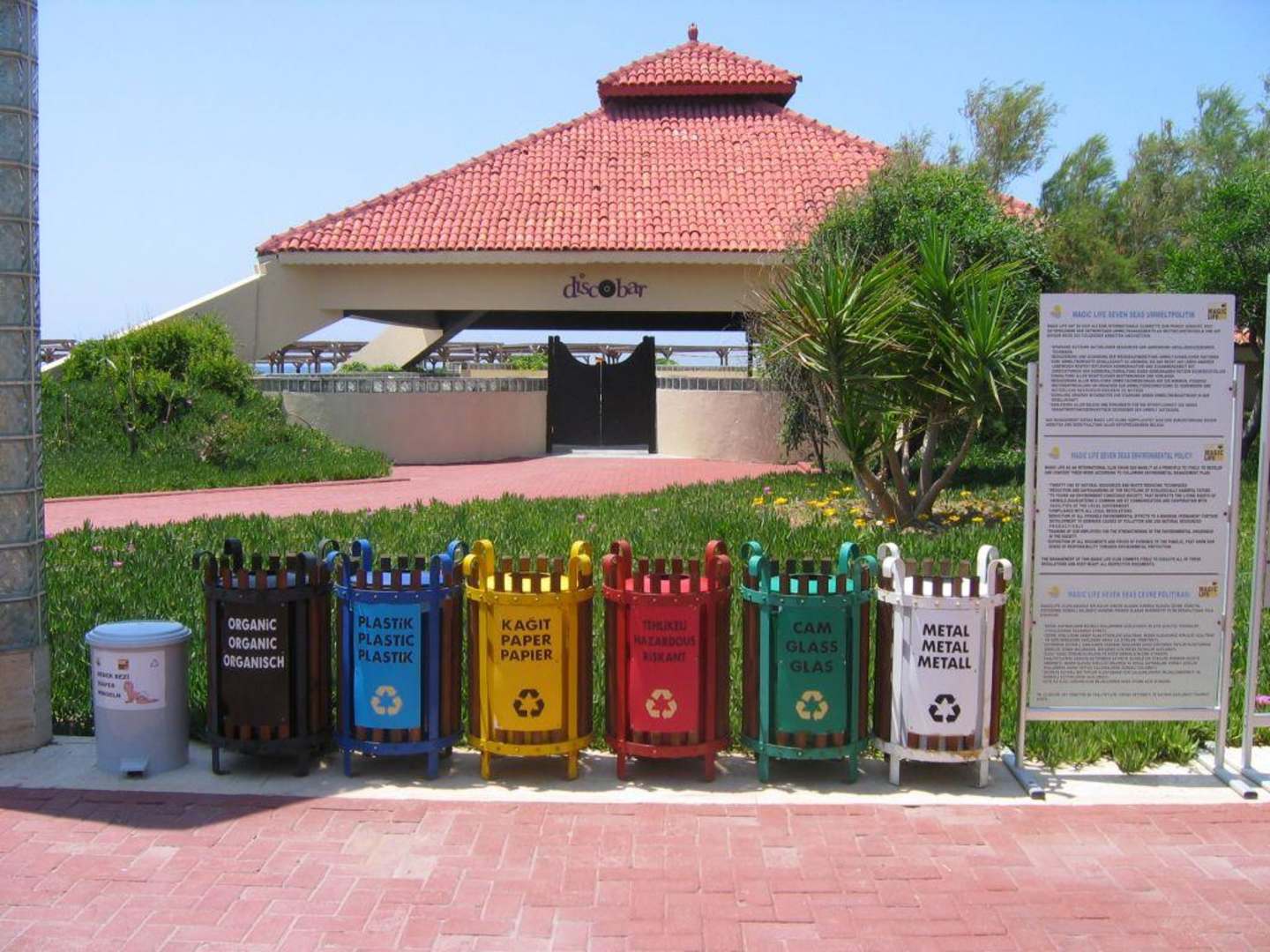 vorbildliche MülltrennungSowohl in der Hotelanlage als auch am Strand finden sich reichlich vorbildliche Mülltonnen zur Mülltrennung.