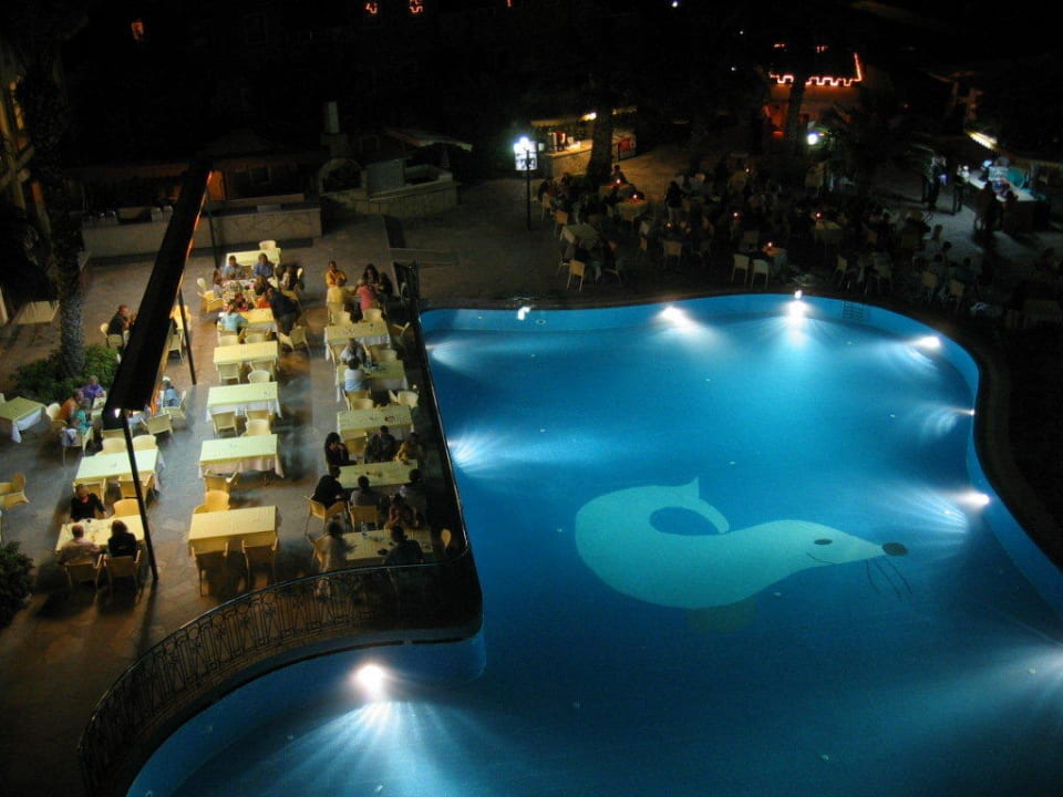 Blick aus dem Appartment auf den Sevice- und Poolbereich