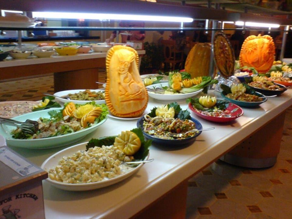 Ein Teil des Buffets. Im Hintergrund ist ein weiterer Tisch mit Salat usw. .. dahinter sind weitere Speisen und auf der Terasse wird jeden abend frisch Gegrilltes angeboten.