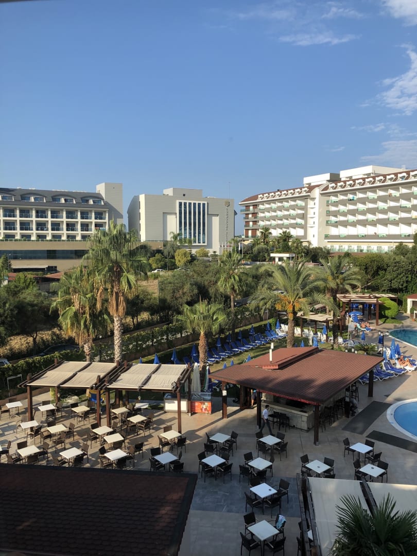 Ausblick vom Zimmer auf den Pool