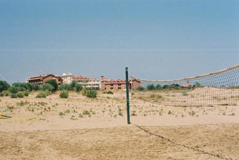 Hotel Monachus vom Strand aus gesehen150 m weit vom Strand entfernt liegt das Hotel Monachus