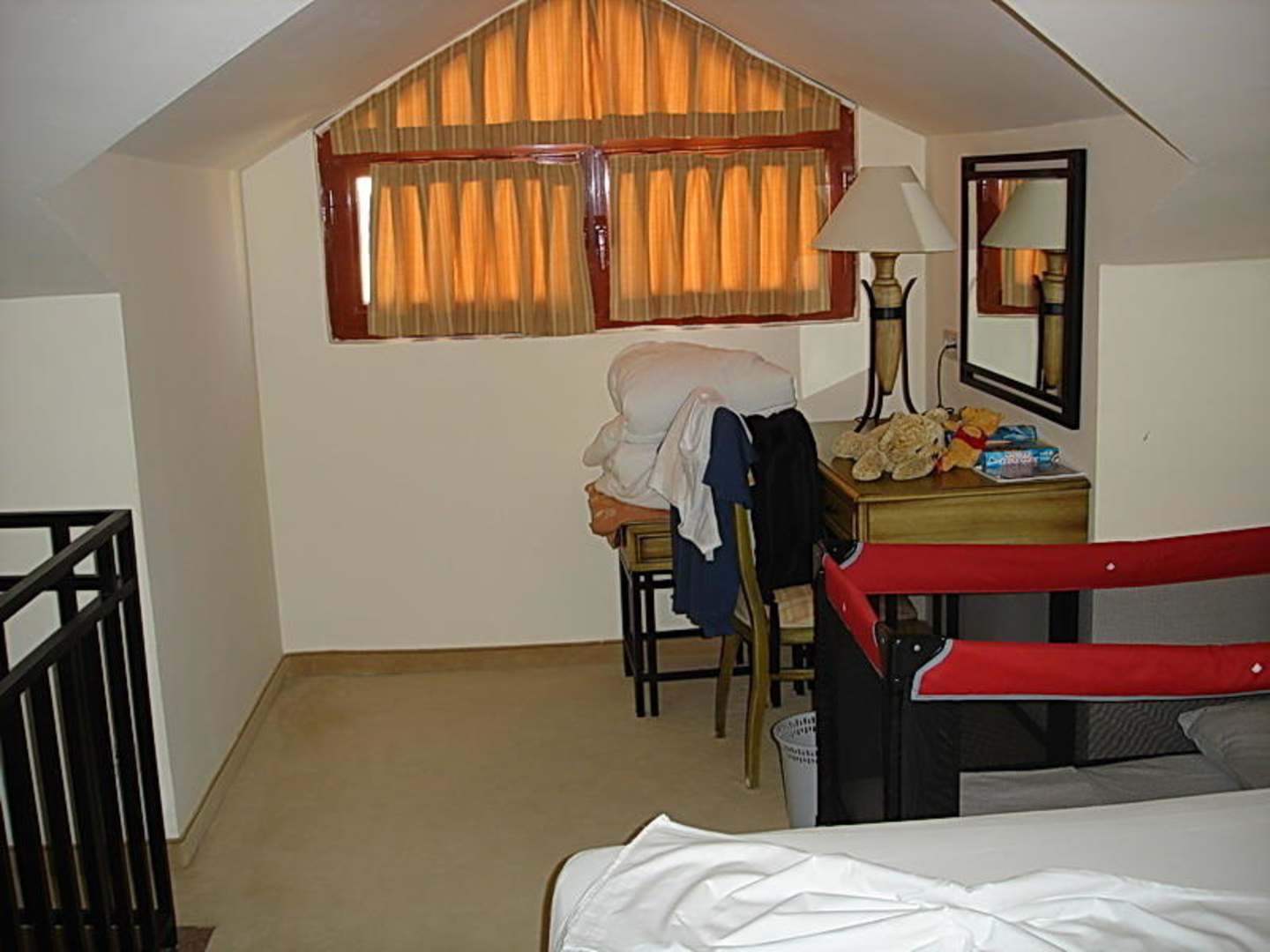 Blick zum Erker des Obergeschoßes. Das Reisegitterbett wurde uns automatisch und kostenlos für unsere kleine Tochter (<2 Jahre) ins Zimmer gestellt, sehr lobenswert.