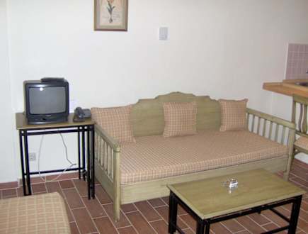 Sofa und TV im DuplexapartmentRechts davon befindet sich die "Küche" (siehe anderes Bild:Eingang des Apartments).