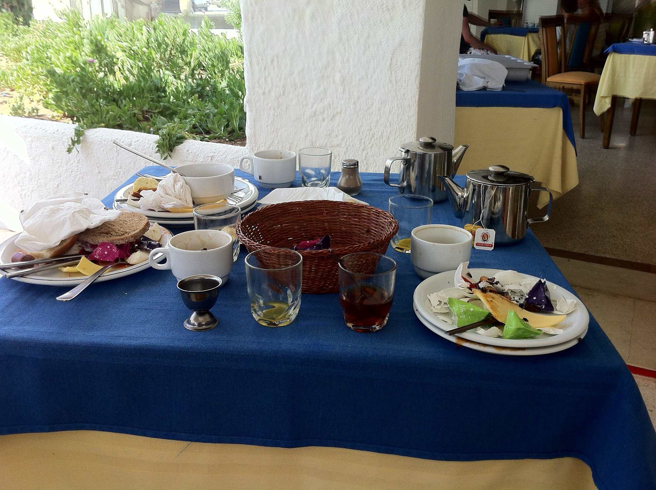 Überall nicht abgeräumte Tische