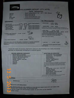 Öffnungzeiten der einzelnen Bars, Café usw. Monart City Hotel
