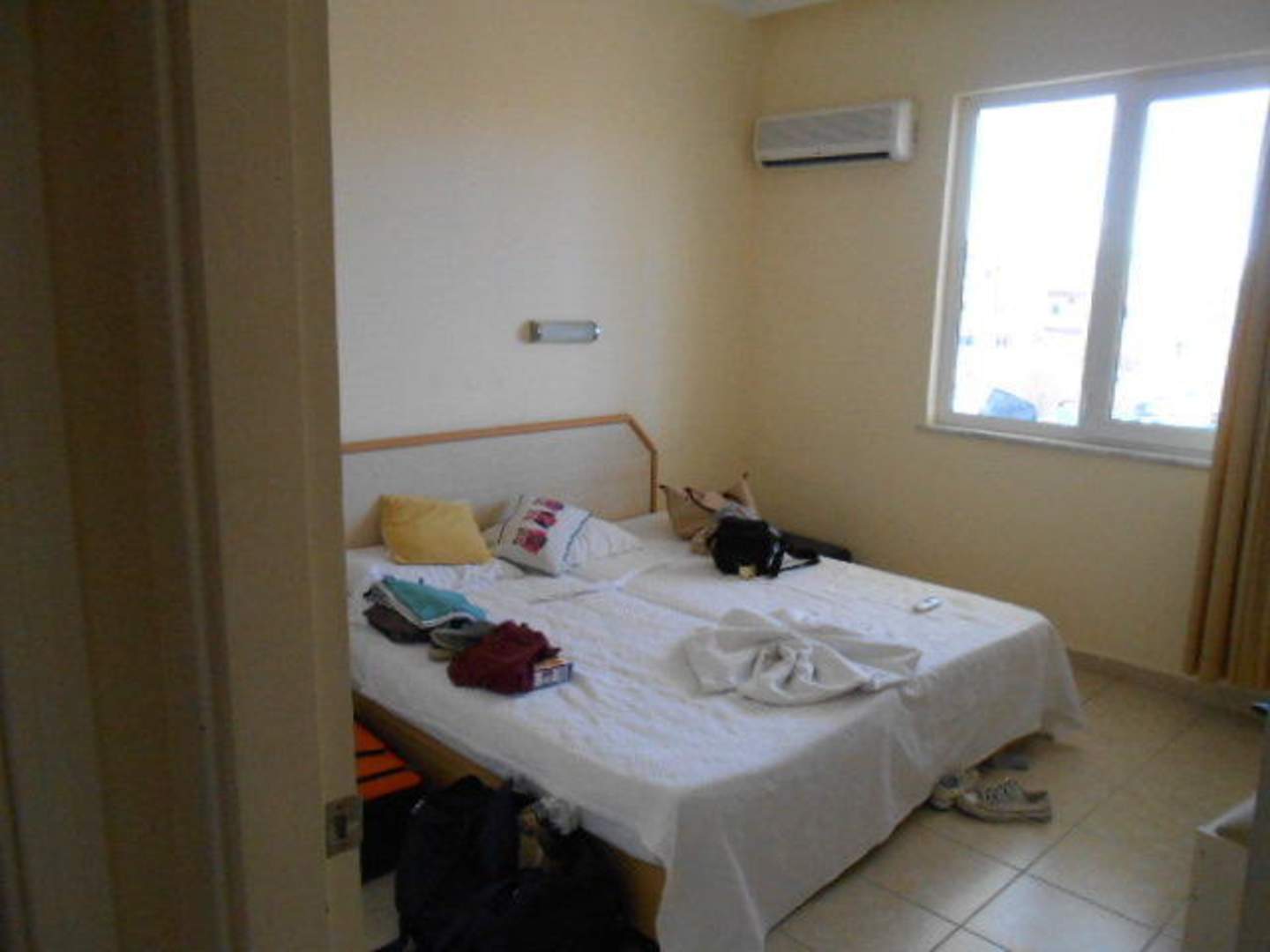 Das kleine Zimmer jedoch mit Klimaanlage.Die Bette