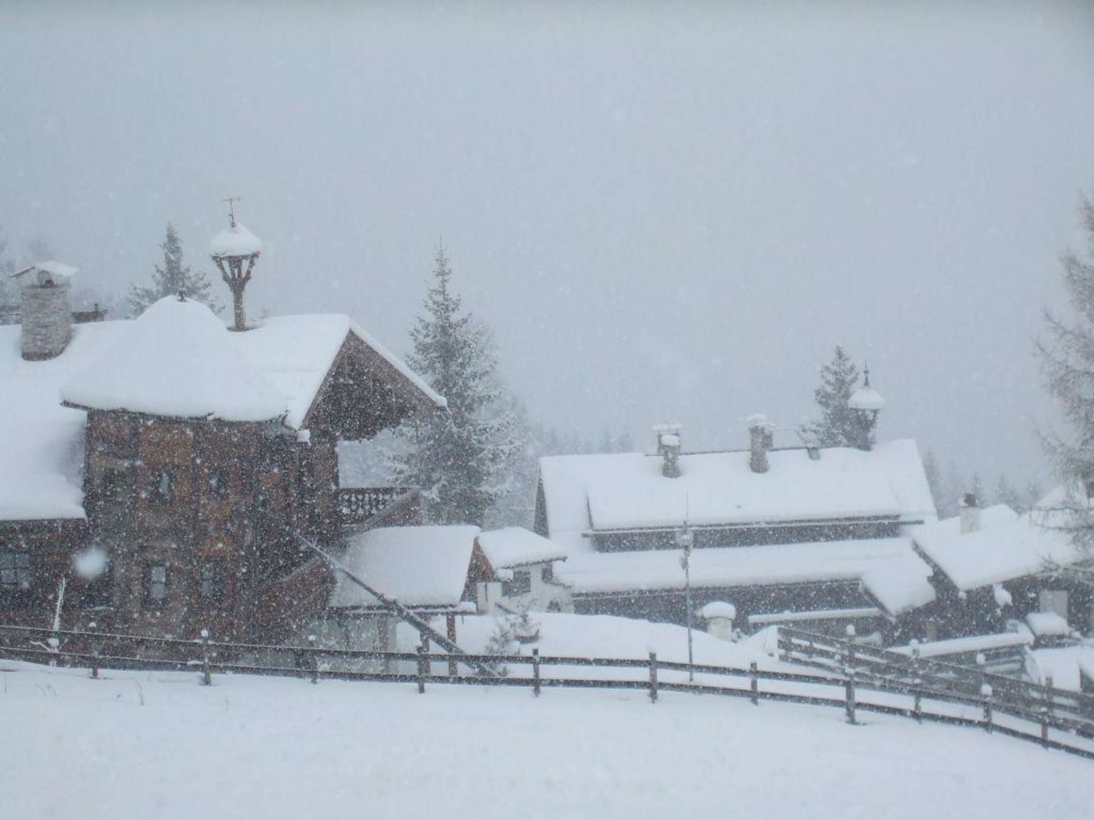 Schiefe Alm plus Bellevue AlmDiese Aufnahme entstand 2008 in der Woche zwischen dem 6. und 13. Dezember und zeigt die relativ neue SCHIEFE ALM, die in den letzten Jahren direkt neben der bekannten BELLEVUE ALM (rechts im Bild) gebaut wurde. Das Foto wurde im Verlauf einer Abfahrt vom Stubnerkogel runter nach Bad Gastein während eines Schneetreibens gemacht.