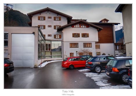 Blick vom Parkplatz auf das Hotel