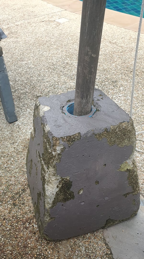 StrandSchirmständer mit unpassenden und alten Sonnenschirm