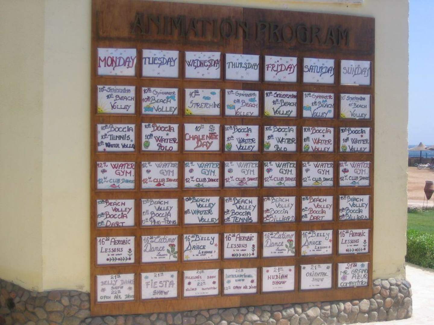 Animationstafel (Wochenprogramm) am Strand