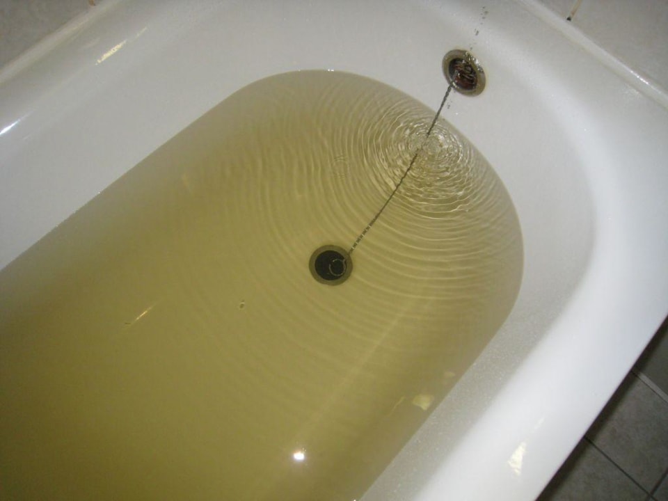 das kalte Wasser war klar, das warme Wasser führte zur Braunfärbung in der Badewanne - ein Zeichen für Korrosion in den Warmwasser-Rohrleitungen des Hotels