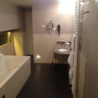 Welness Bad mit Whirlwanne und Blick nach draußen