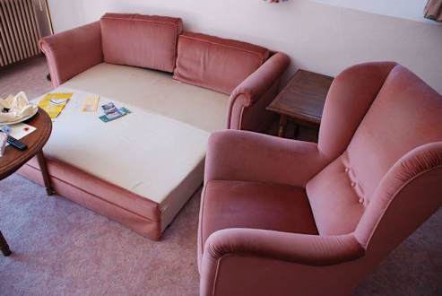fleckige altbackene Polstermöbel