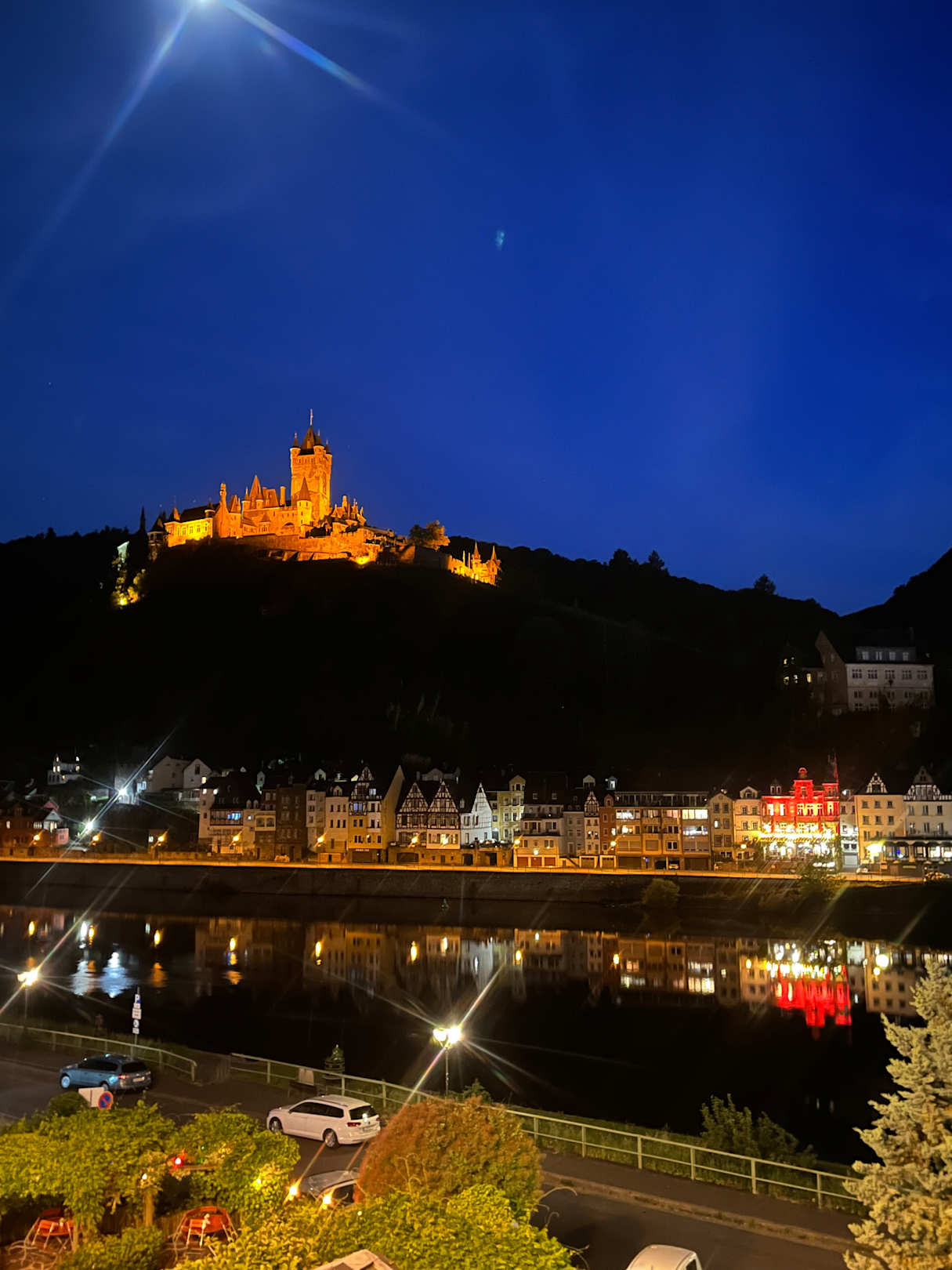 Beleuchtete Reichsburg am Abend