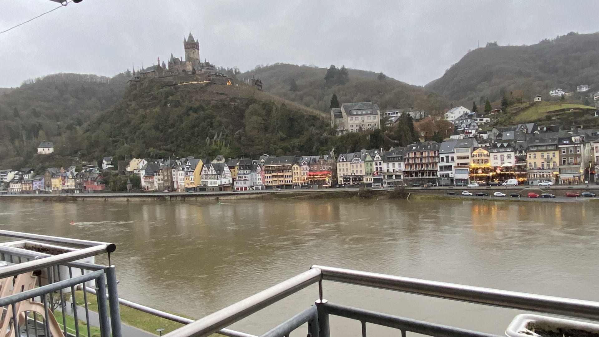 Blick vom Balkon auf die Reichsburg und Cochem -- Hotel Triton