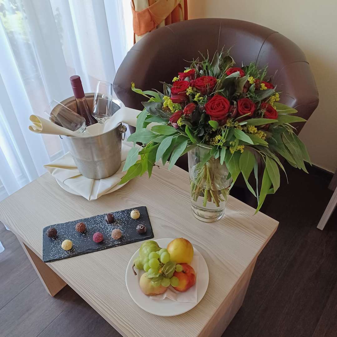 ZimmerIm Rahmen vom Romantik Deluxe Arrangement in unserem Zimmer - den Blumenstrauß habe ich für meine Frau dazu gebucht