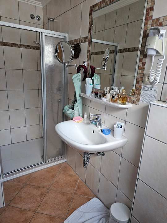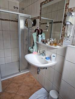 Ein Bad im Doppelzimmer Standart im 4* Hotel Krähennest in Löf