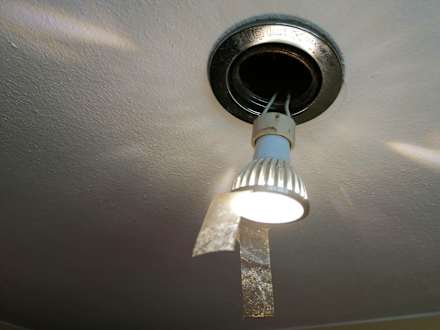 Die Badbeleuchtung, cooles Design - fast sauber und sie funktioniert.