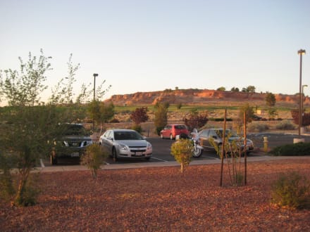 View from pool to parking area