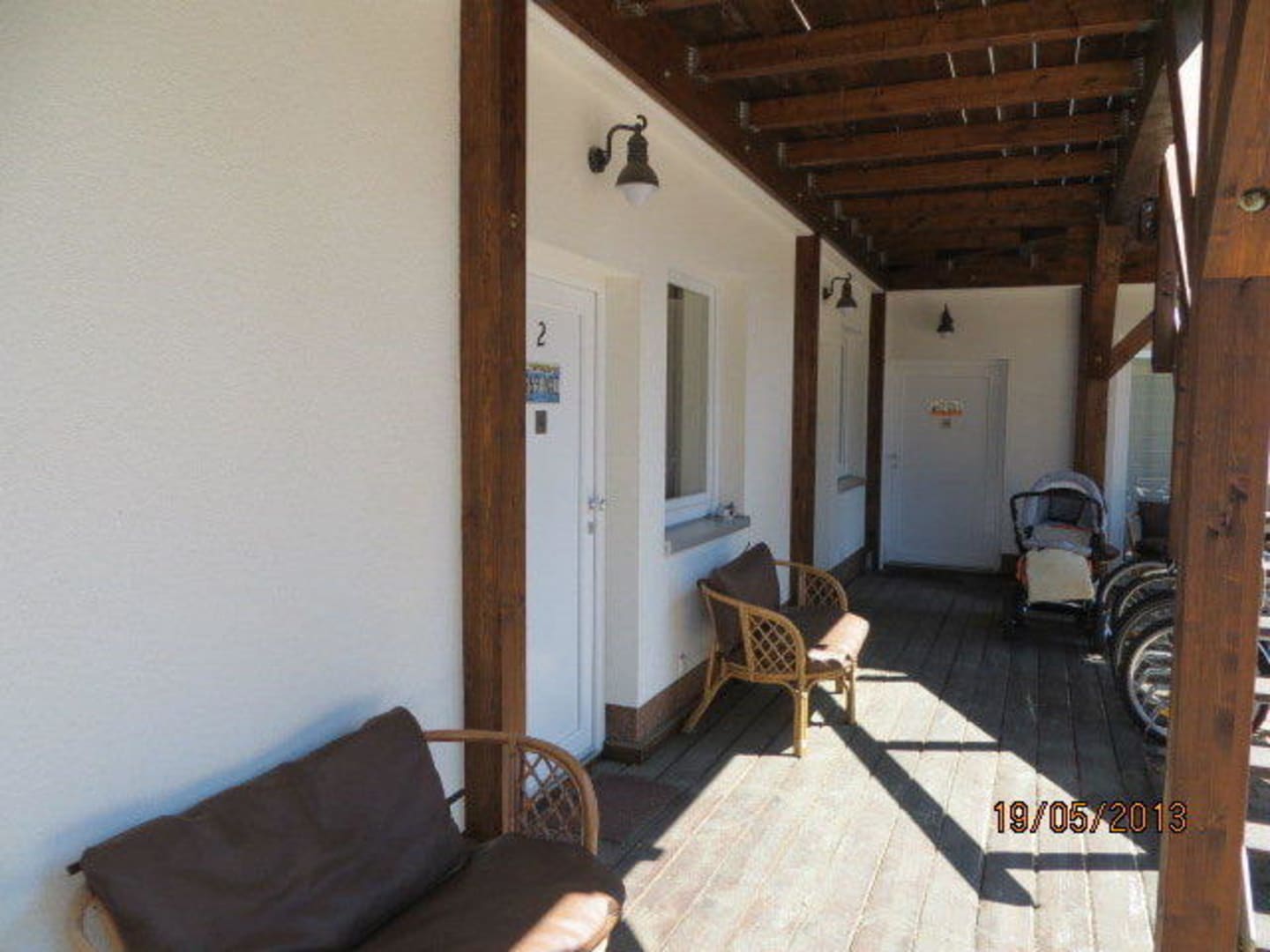 Porch bzw. Terrasse zum Zimmerwie im Wilden Westen. Sitzen auf "the Porch" und ein kaltes Berliner Weiße geniessen.