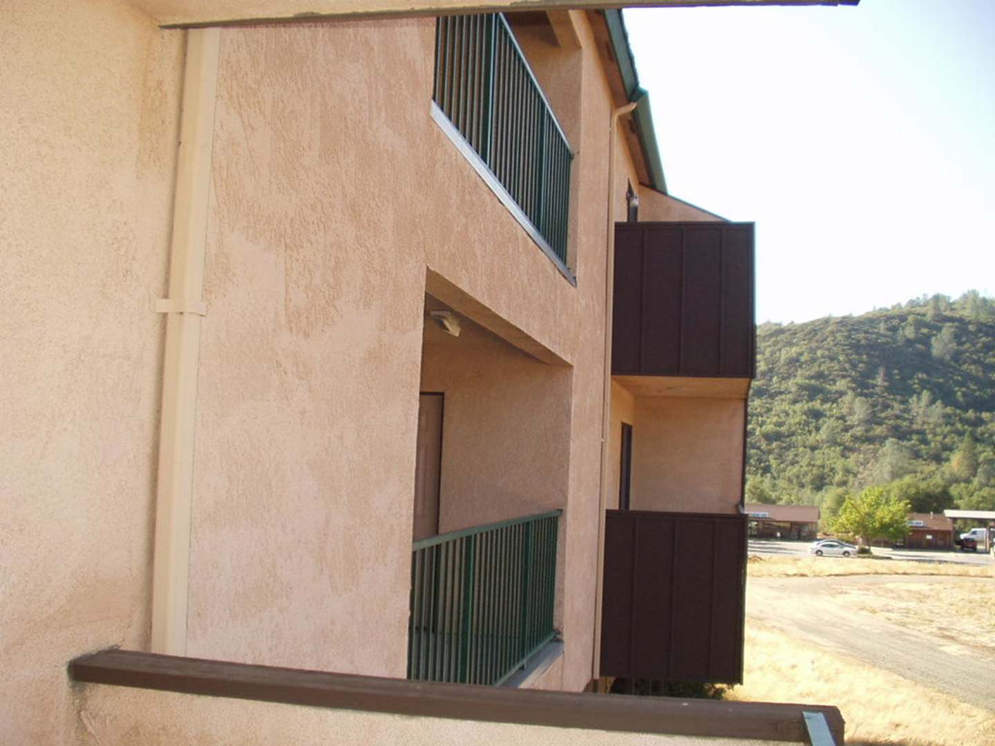 Jedes Zimmer hat nach hinten raus Balkon, vor dem Zimmer der Parkplatz