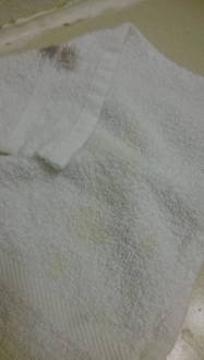 Auf einigen Handtüchern fanden sich schwarze Make-up-Flecken (wrsl Wimpentusche) und seltsame gelbe Flecken. Erstere lassen sich 100%ig durch Waschen entfernen!