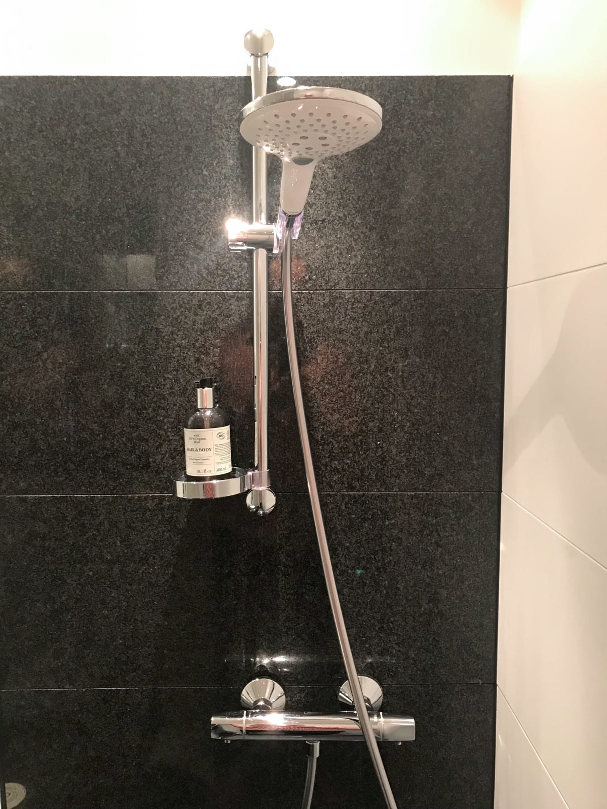 Die Regenschauerdusche im Badezimmer.