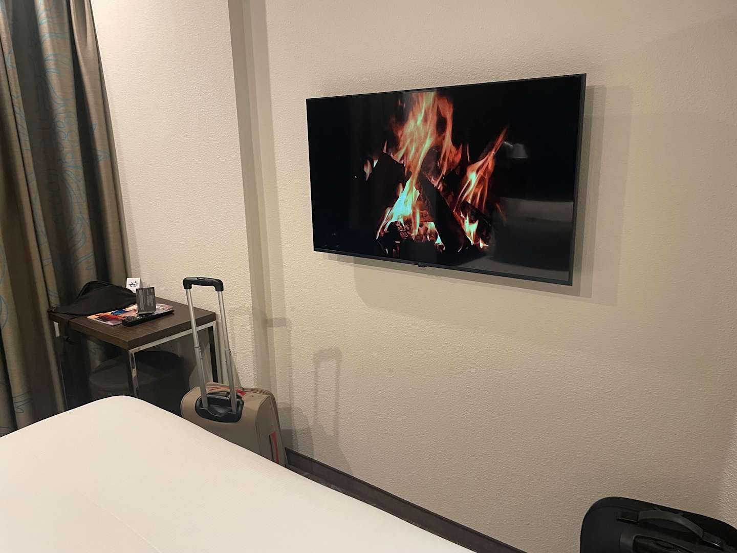 Begrüßung mit flackerndem Kamin im TV