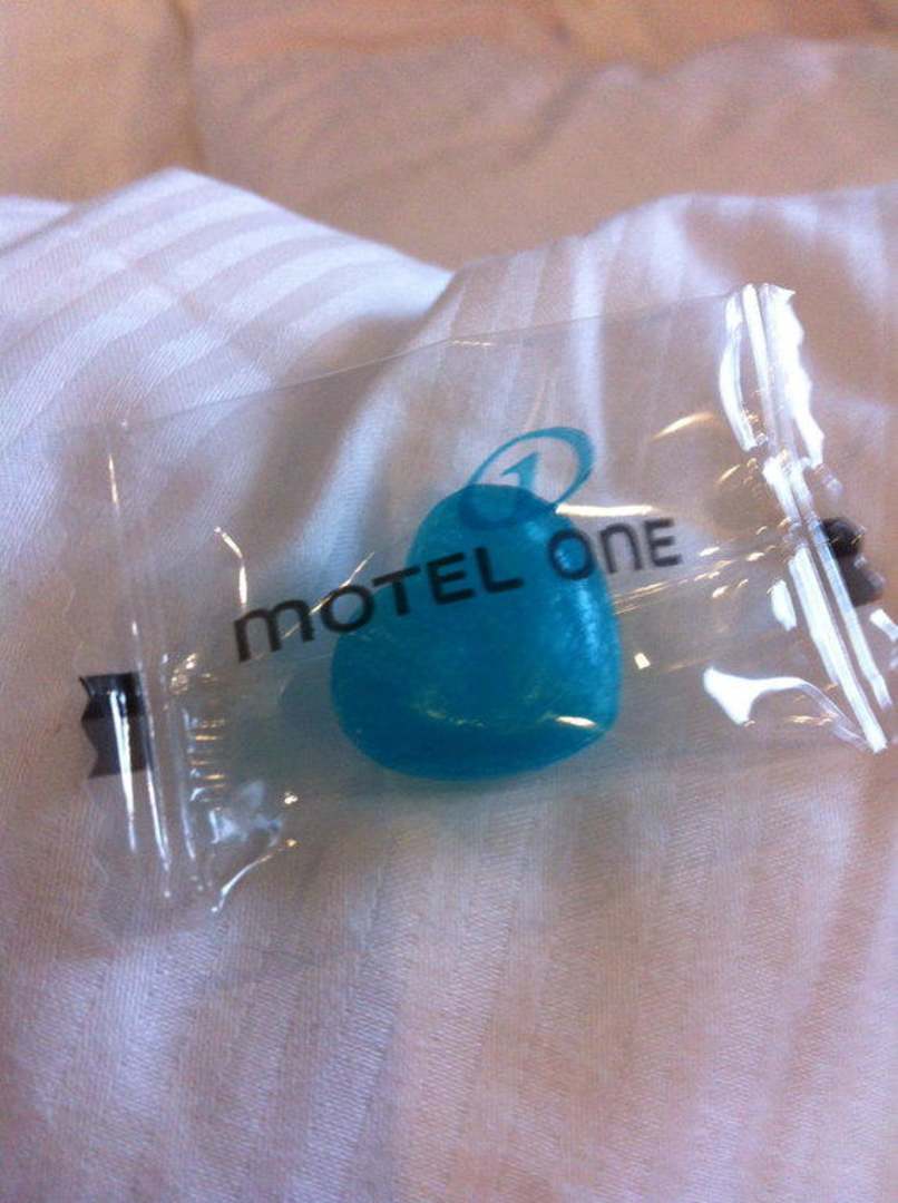 ...Bonbons in der typischen Motel One Farbe