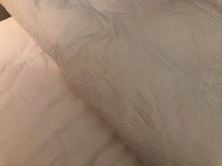 Die Bettwäsche, die seit 5Tagen den Fleck aufweist und einfach nicht gewechselt wird