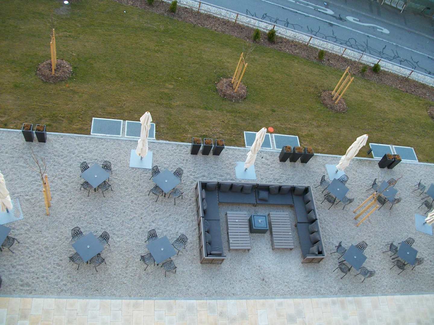 Sitzmöglichkeiten hinterm Motel Motel One München-Garching