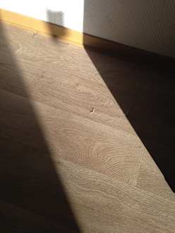 Staubflusen direkt neben dem Doppelbett im Hauptzimmer.
