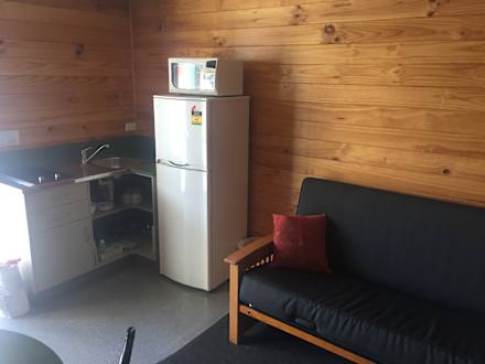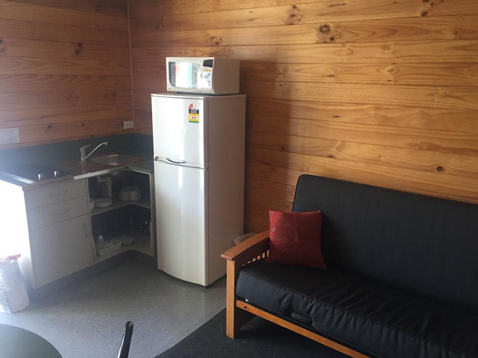 Kitchen-Cabin: Wohn-/Essbereich mit Küchenzeile.