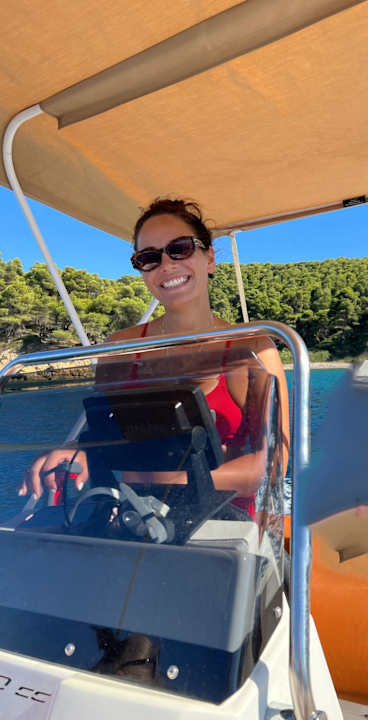 Theodora als Skipperin! Eine sehr nette, fleißige und tolle Mitarbeiterin im Hotel.