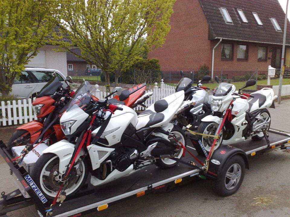 Unsere Bikes Dieses Bild zeigt die Bikes von Peter, Ralle, Carola und Anja bei der Abfahrt in die Berge zum Simonhof