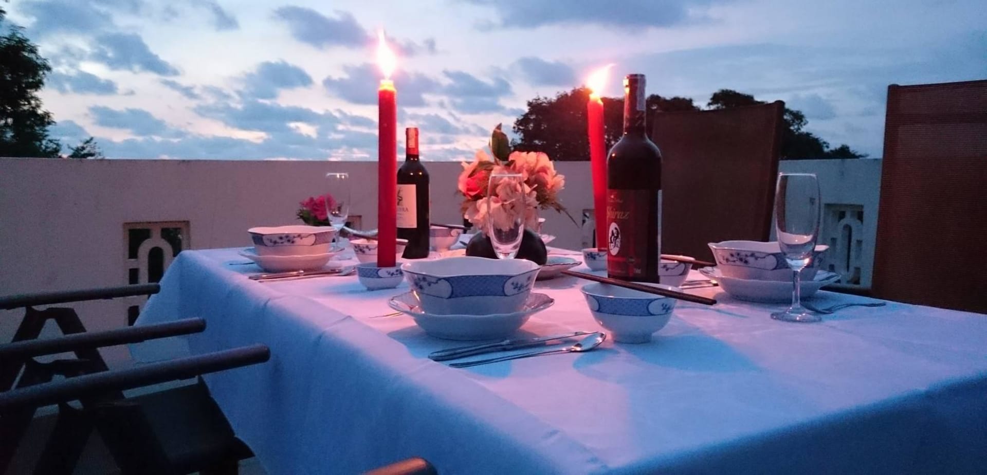 Candle-Light-Dinner auf großer Dachterrasse