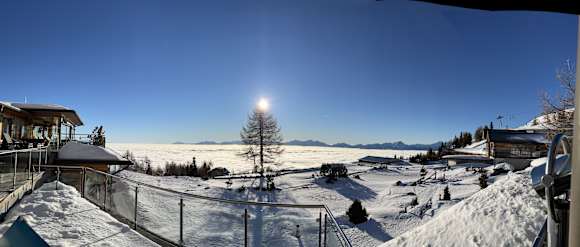 Ein Panorama - Winter-Ausblick von der Terrasse am Feuerberg