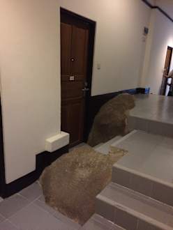 Flur. Hotel direkt auf den Felsen gebaut.
