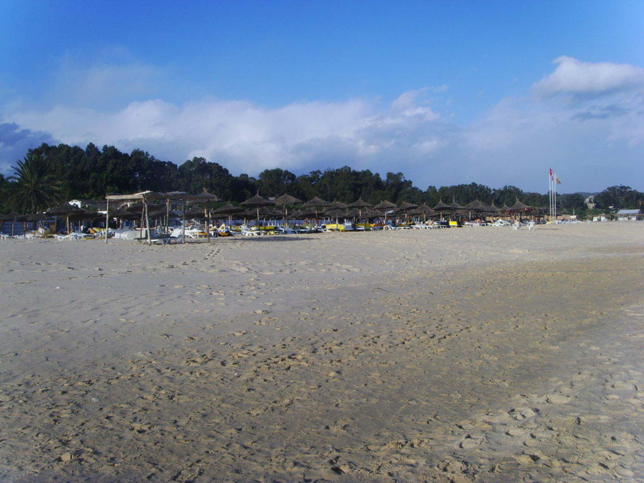 Strand, viele Schirme zu wenig Liegen