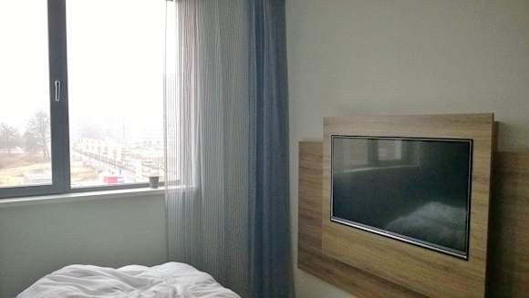 Vor dem Fenster eine große Baustelle (durch die Lärmschutzfenster nicht zu hören).